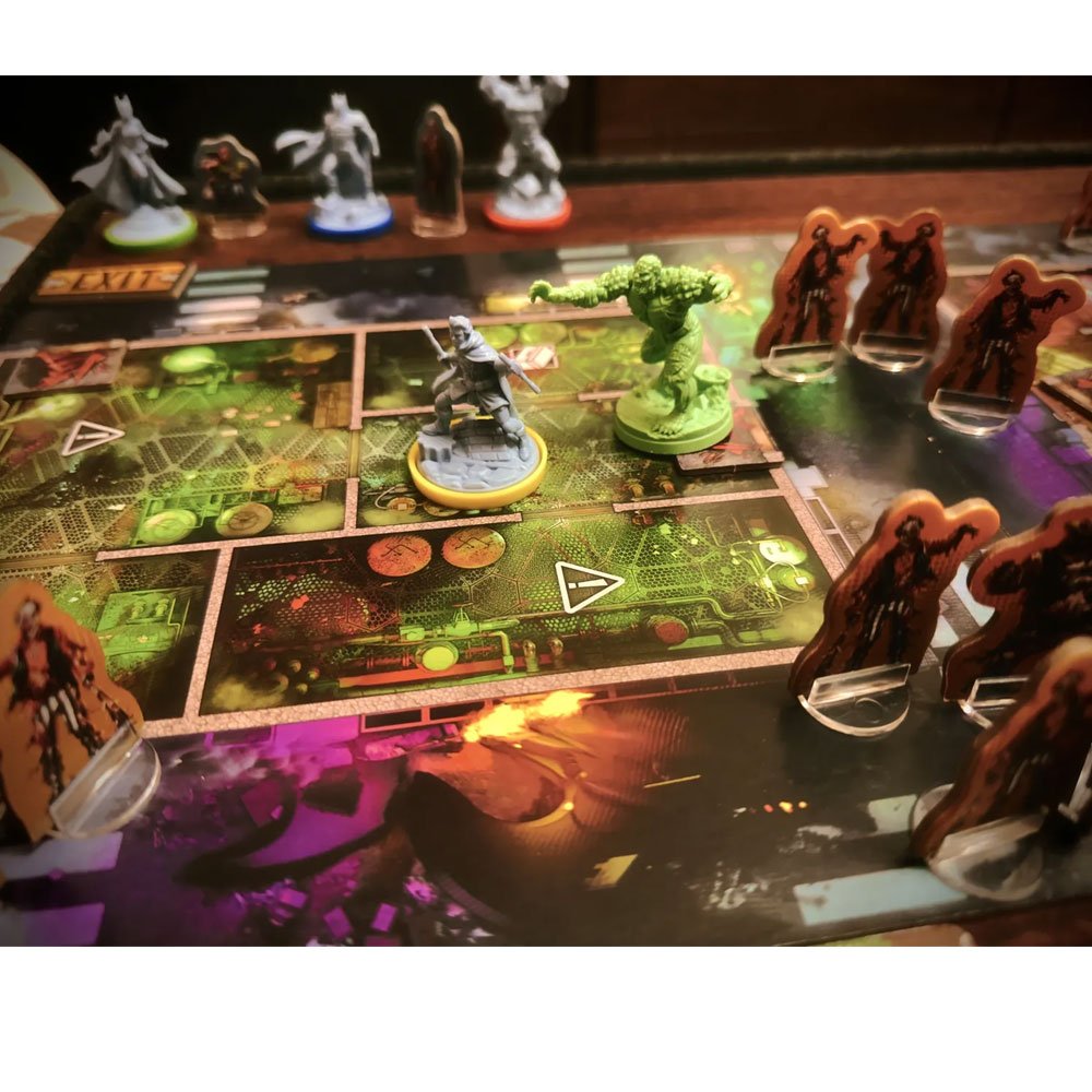 - Miniaturas detalladas: Héroes DC premium, zombies infectados y terrain urbano.