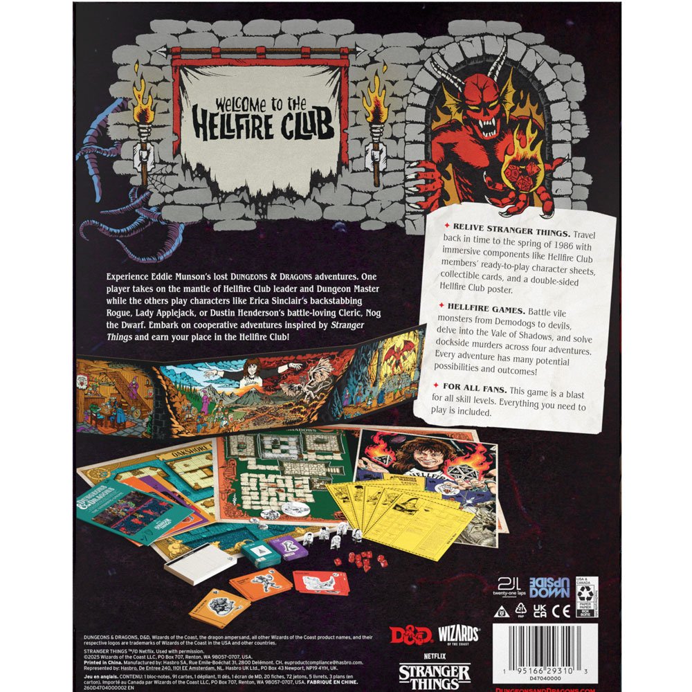 Es un juego de mesa colaborativo que transporta a los jugadores a la primavera de 1986 en Hawkins. La historia se centra en el legado de Eddie Munson, el carismático líder del Hellfire Club, cuya campaña final de Dungeons & Dragons quedó inconclusa… hasta ahora.