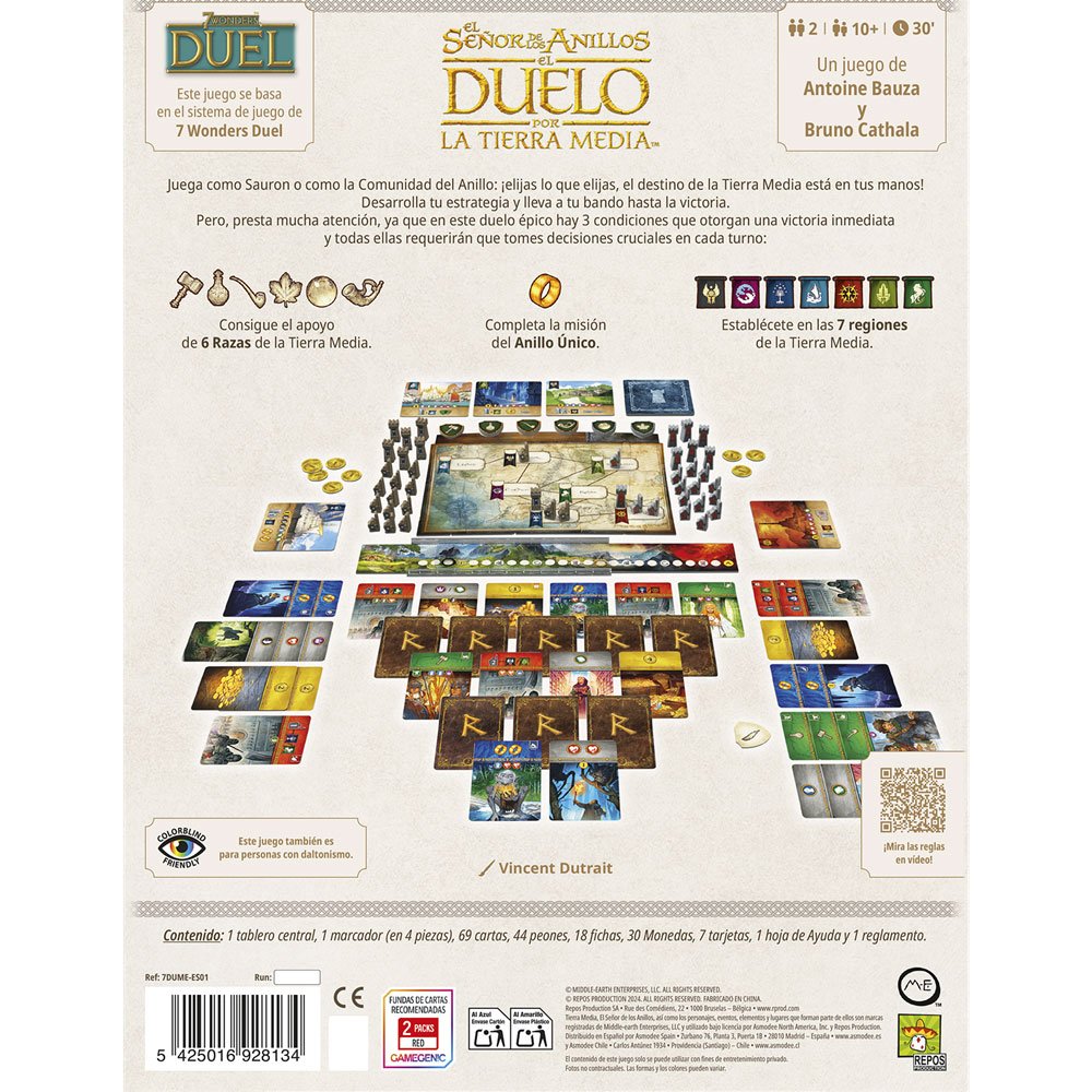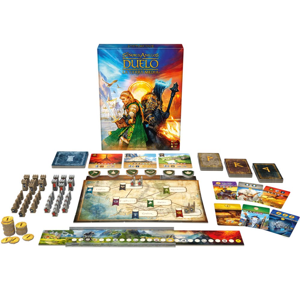¡Vive la batalla definitiva por la Tierra Media en este emocionante duelo de estrategia para dos personas!. Elige tu bando, gestiona tus recursos y sé el primero en destruir el Anillo o conquistar el mundo. Con reglas ágiles y una presentación visual impresionante, es el juego perfecto para partidas rápidas de 30 minutos llenas de emoción.