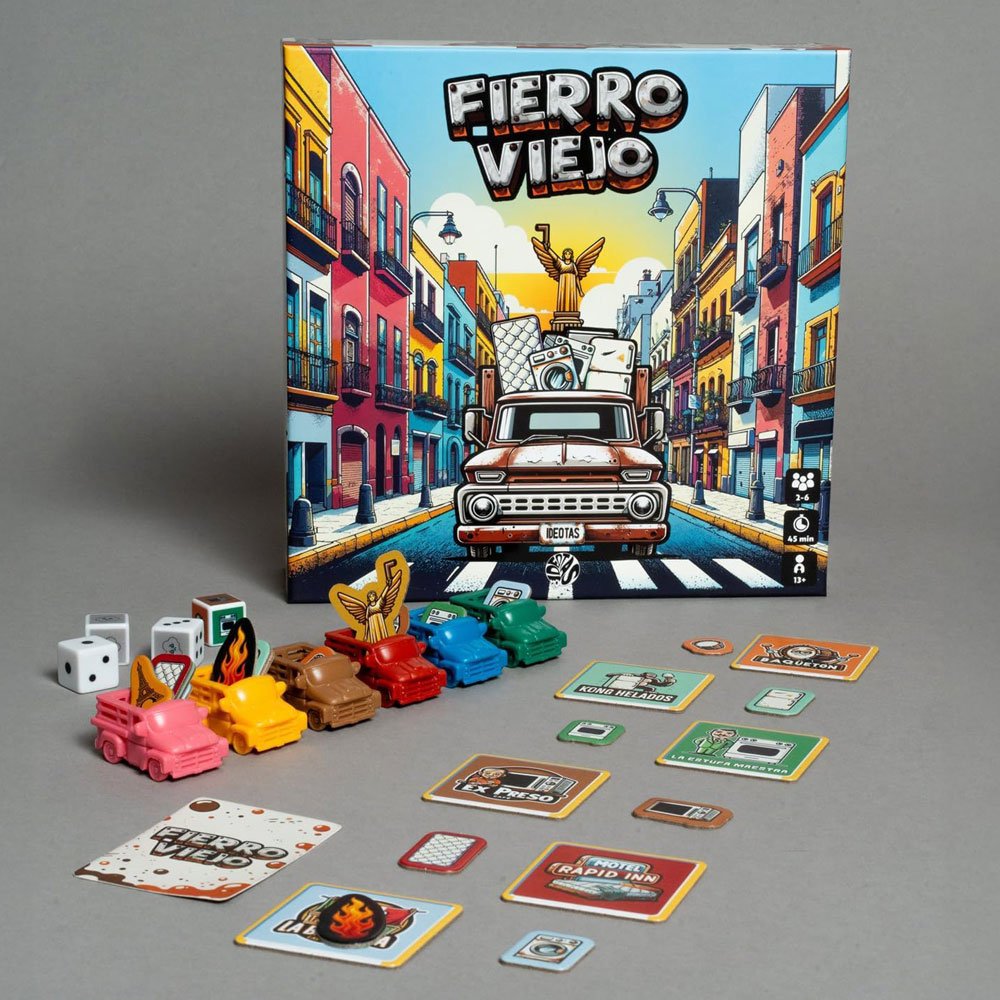 Tu objetivo es ser el más rápido de la ciudad. Debes recorrer el tablero para recolectar tres objetos específicos que te pide tu “Carta de Misión” secreta (pueden ser estufas, lavadoras o microondas). Una vez que tengas tu colección completa, debes ir al centro del tablero por “El Ángel” (la pieza maestra del fierro viejo) y sacarlo por una de las esquinas del mapa para ganar la partida.