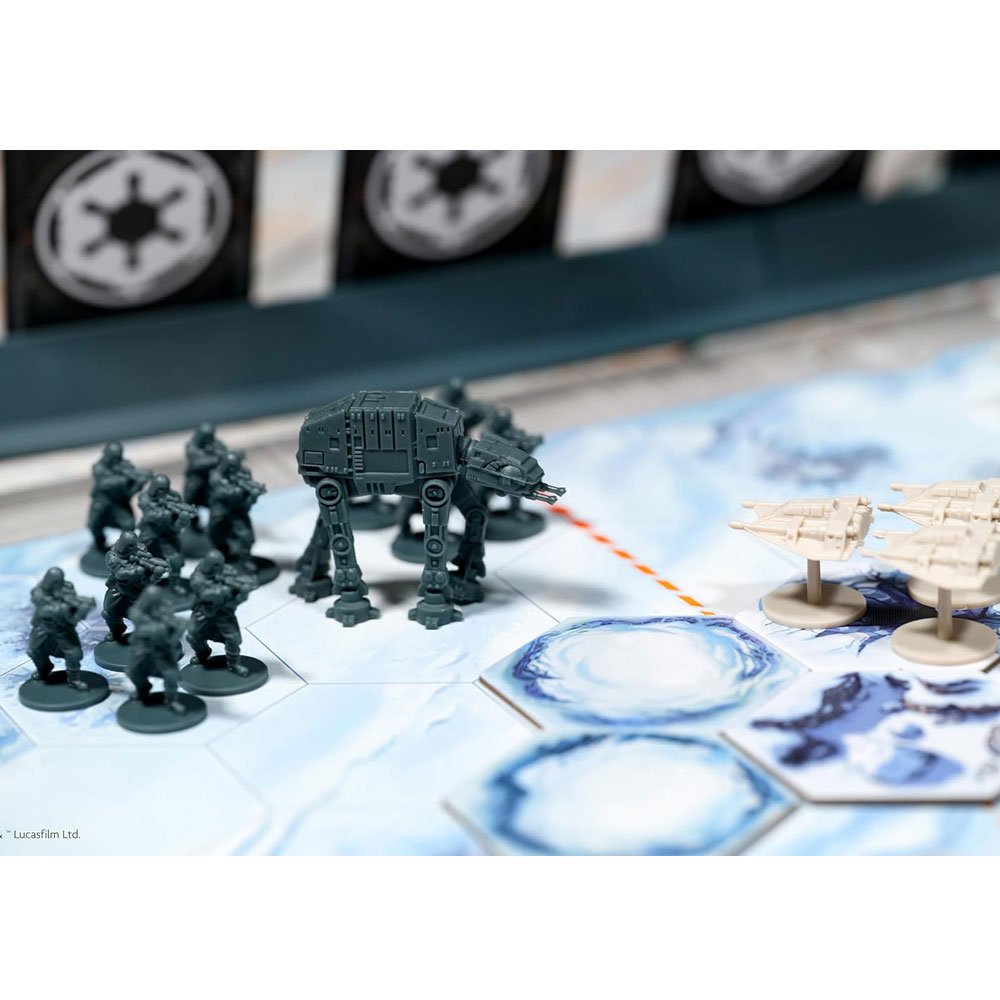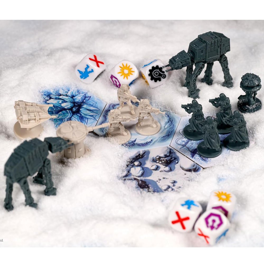 - 74 miniaturas (3 AT-ATS, 9 snowspeeders, 32 snowtroopers, 24 soldados de la Base Echo, 4 droides sonda imperiales y 2 artillerías rebeldes)