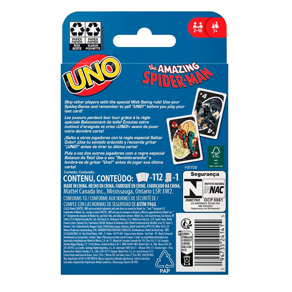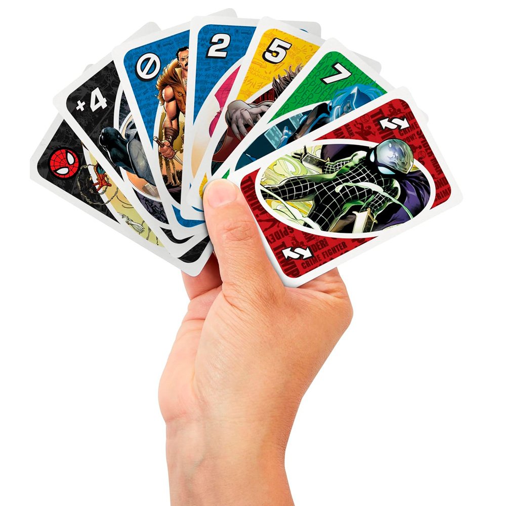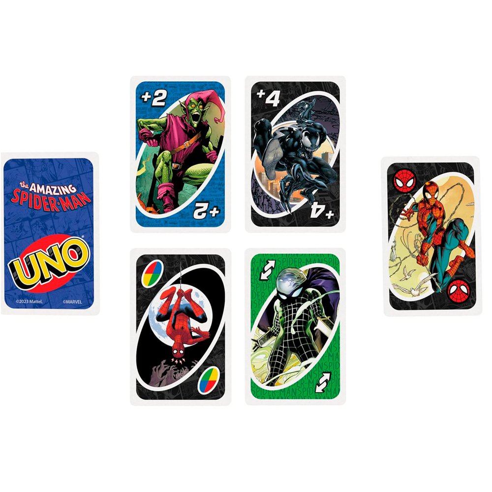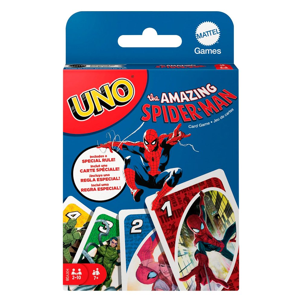 ¡El UNO que todo fan de Spider-Man y Marvel debe tener! Edición temática del icónico juego de cartas, inspirada en la serie de cómics The Amazing Spider-Man. Combina las reglas clásicas que todos conocemos con ilustraciones increíbles de Spider-Man, sus aliados y villanos, para una experiencia llena de acción y nostalgia.